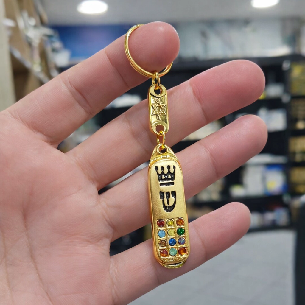 Chaveiro Mezuzah Pedras 12 Tribos em Metal Dourado é uma peça única que une tradição e beleza. Inspirado no Peitoral Sacerdotal, possui 12 pedras representando as tribos de Israel, simbolizando proteção e fé. Feito em metal dourado de alta qualidade, é perfeito para carregar consigo a espiritualidade judaica no dia a dia. Um acessório marcante e significativo para você ou para presentear com muito significado.
